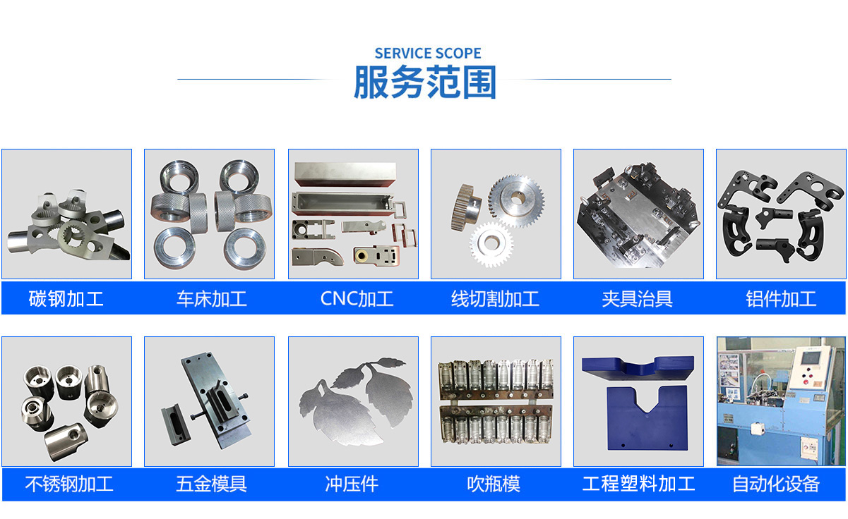 公司主要設(shè)備有:CNC數(shù)控加工中心、CNC數(shù)控車床、線切割、普通車床、普通銑床、平面磨